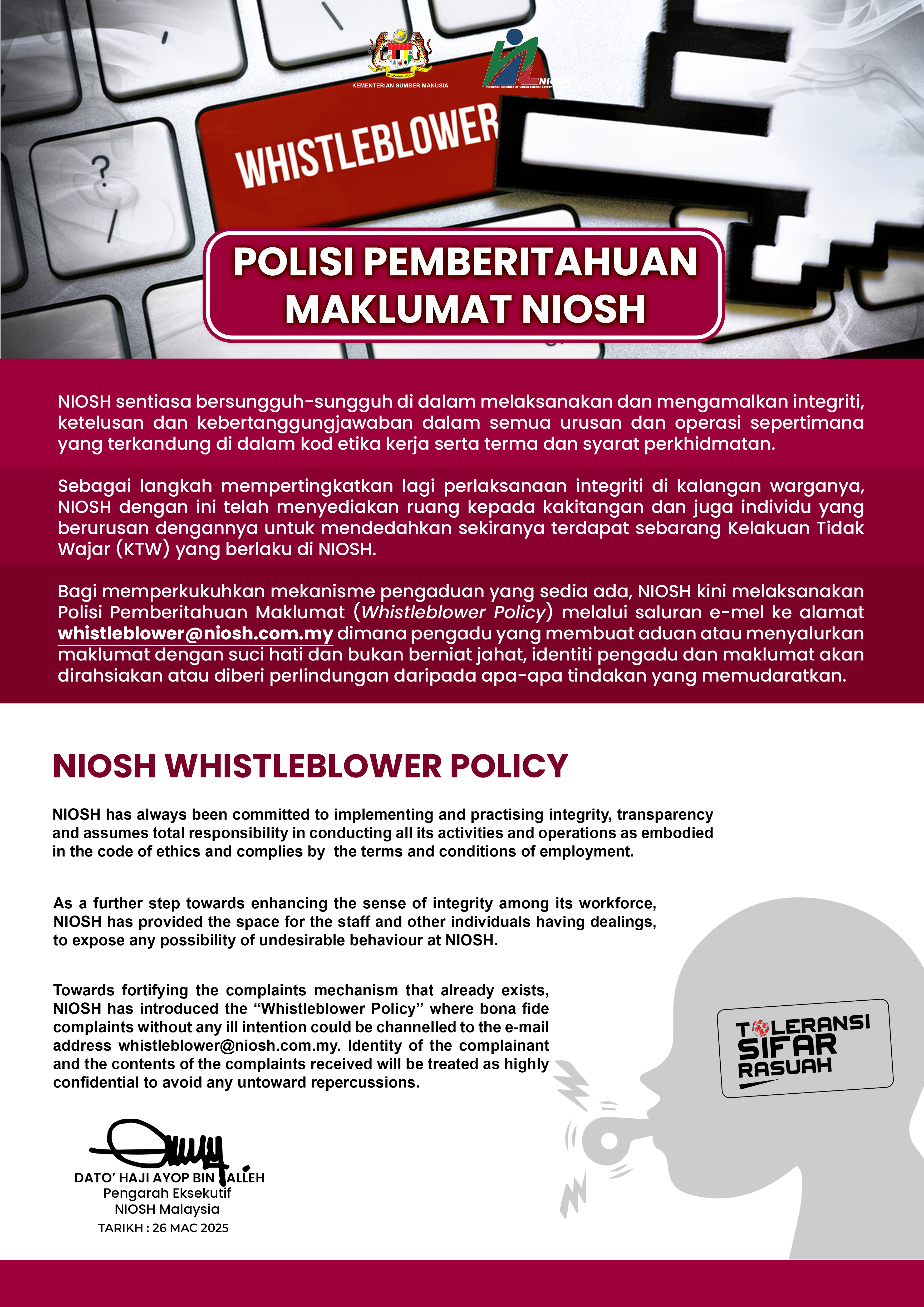 3. Polisi Pemberitahuan Maklumat NIOSH